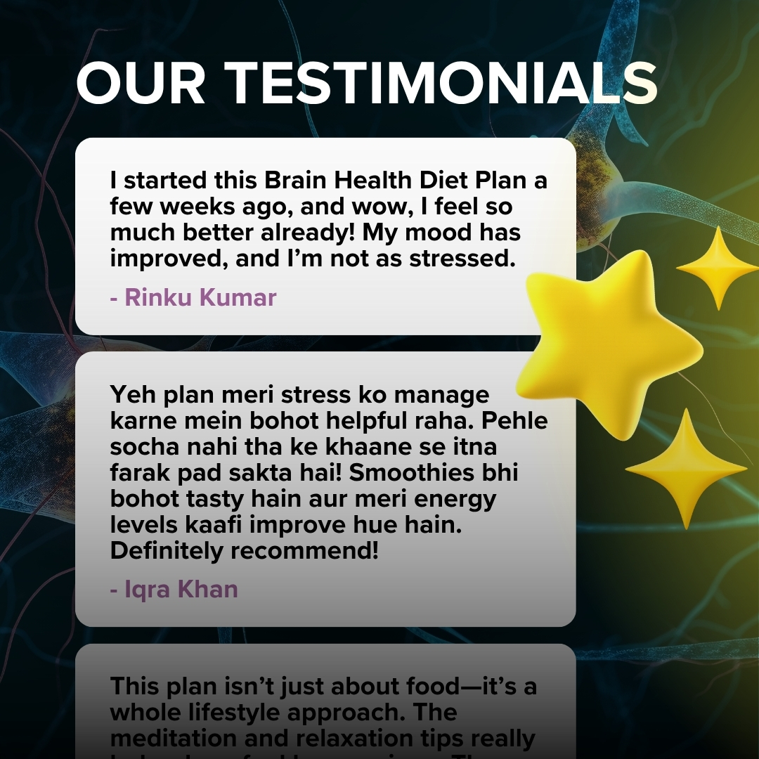 Our 10-week Brain Health Diet Plan is crafted by experts to help you improve focus, calm your mind, and enhance memory. Enjoy nourishing, tasty meals designed to support a healthy brain and balanced mood.